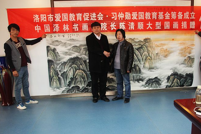 中國澤林書畫院院長陳清順當場捐贈《泰山春暉》風情國畫一副和其它人文字畫十幾副。