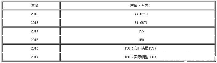 據(jù)中國機床工具工業(yè)協(xié)會磨料磨具分會統(tǒng)計數(shù)據(jù)顯示,2017年我國白剛玉產(chǎn)銷量46萬噸左右,同比增長91.67%。下表是2012年-2017年白剛玉產(chǎn)銷量數(shù)據(jù),僅供參考。