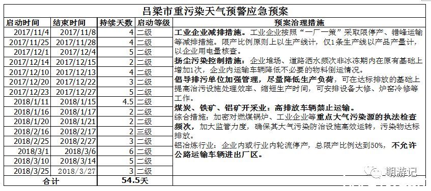 未來半年來看,秋冬季是北方大氣污染頻發高峰期,據不完全統計,2017年-2018年秋冬季期間呂梁市共發布了54.5天二級大氣污染預警天氣,意味著秋冬季5個月里1/3以上時間均是二級預警天氣。因此,秋冬季山西省、呂梁市環保形勢只會比當前形勢更為嚴峻,礦山露天開采、運輸必然會受到影響,應急天氣下生產企業即便不停產,生產負荷也將要求主動下調,礦石供應狀況短期難出現較大程度的改善,礦石價格下調的空間不大。另外,盡管當前國內環保限產預期有所松動,但當前礦石供應整體偏緊,一旦出現安全事故或掃黑行動揪出關聯礦商的黑惡勢力,仍將有可能大幅影響礦石供應。