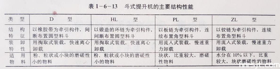 斗式提升機是在鏈條或皮帶等撓性牽引構件上,每隔一定間距安裝鋼質斗,物料放在斗中提升運輸,其運送方式可以垂直,也可以傾斜。其優點是占地小、輸送系統布置緊湊,提升高度大,有良好的密封性能等。缺點是過載的敏感性大,斗和牽引機構易損壞,在出口處的灰塵較大·常用的斗式提升機的主要性能見表1一6一13。