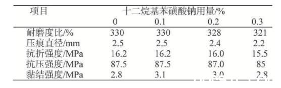 2.3 十二烷基苯磺酸鈉對(duì)金剛砂地坪物理力學(xué)性能的影響