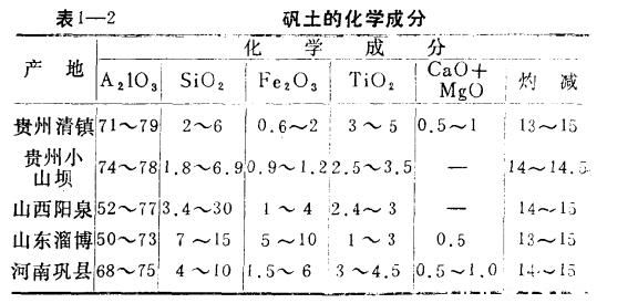 我國礬土蘊藏量極為豐富,大型的新礦不斷有發現,山西陽泉、河南鞏縣,貴州清鎮等地都是有名的礬土產地,而且品位都很高。幾個地區的礬二卜化學成分如表1—2,物理性能如表1—3。