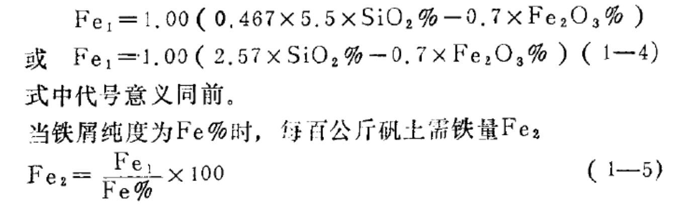 3、根據選定的鐵硅比5.5計算需要鐵量Fe1