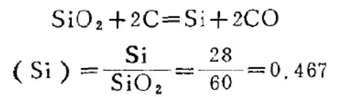 鐵屑的加入量是根據礬上中氧化硅、氧化鐵含量而定,務使鐵合金中硅的濃度在16%以下。前面曾提到硅含量在20%以上時合金磁性就會受到影響,為避免這種不利影響,應該遠離這一點,又考慮到爐內合金成分的不一致性,所以選用16%以下的硅濃度是必要的,這個濃度就決定了鐵硅比值等于5.5。